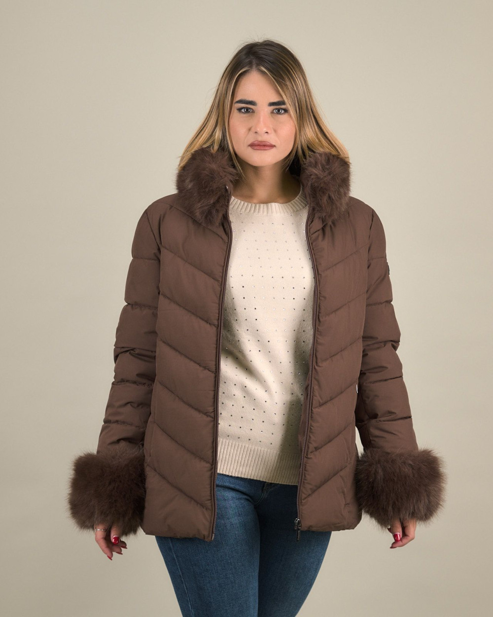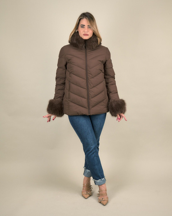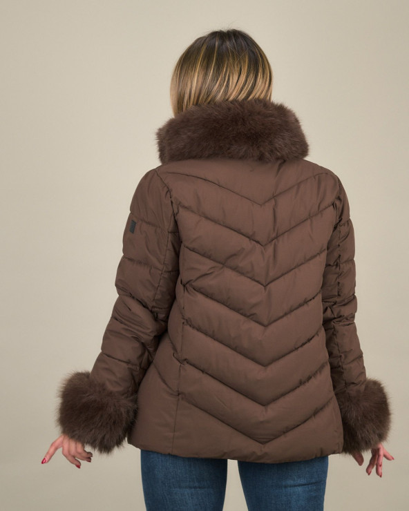 Piumino con collo e polsi in eco pelliccia