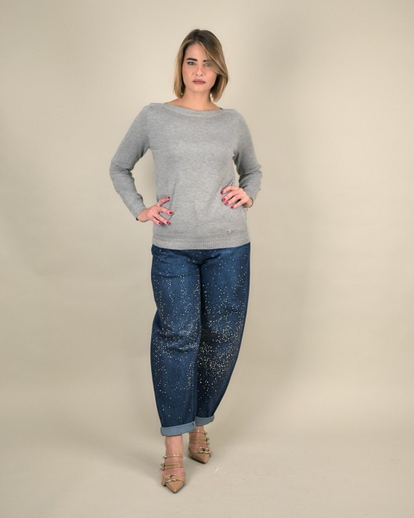 Maglia con scollo a barchetta e dettagli lurex