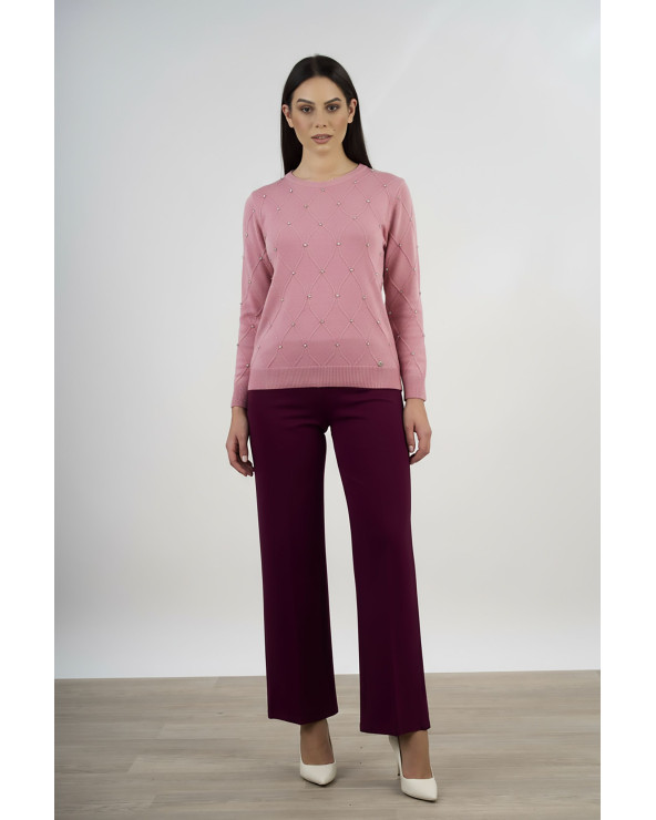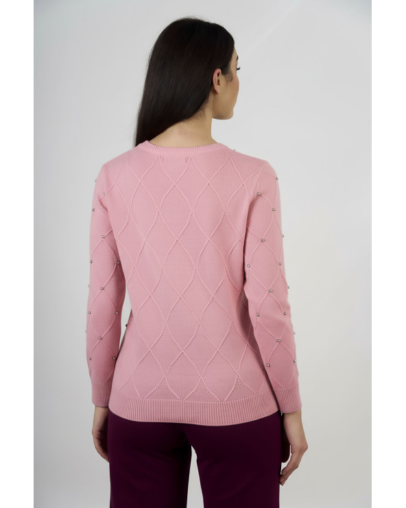 Maglia elegante con trama a rombi e luminose applicazioni gioiello, pensata per aggiungere un tocco sofisticato e femminile ai tuoi outfit.