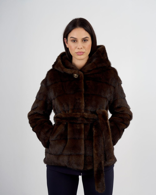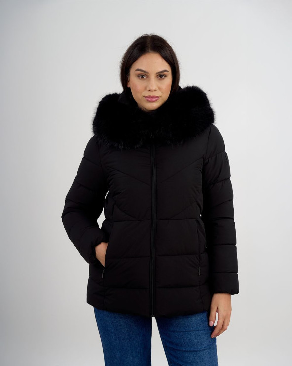 Cappotto elegante con cappuccio impreziosito da un ampio bordo in ecopelliccia, perfetto per affrontare l’inverno con stile. Presenta una...