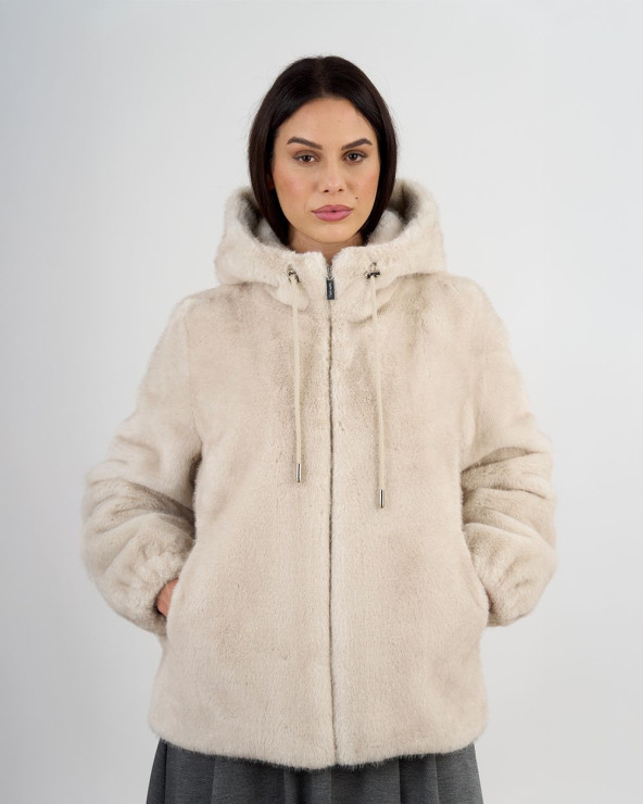 Giacca in eco pelliccia con cappuccio e zip