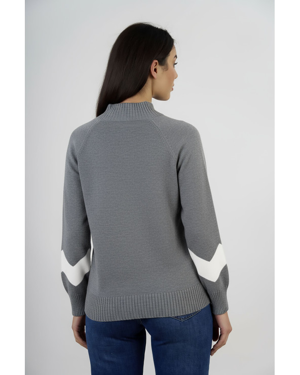 Realizzata in morbido filato elasticizzato, presenta un collo a coste e un design con dettagli a contrasto sulle maniche, che donano un effetto dinamico e contemporaneo.